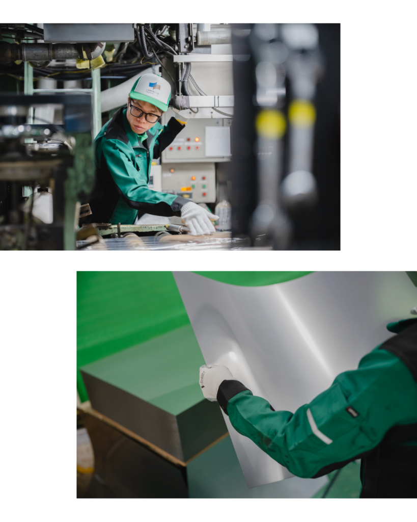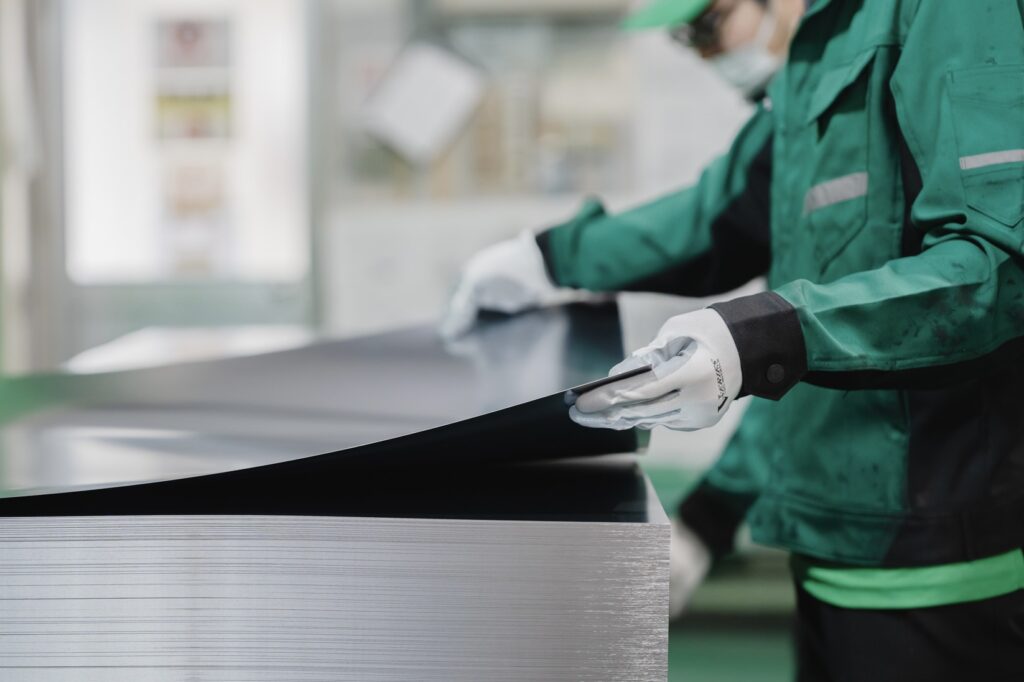 メイン事業として、金属薄板と各種プラスチックフィルムのラミネート加工(貼りあわせ)を行っております。